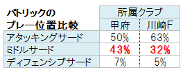 川崎Fの中村は25節の終了時点で7得点を記録。ゴールは全てコンフェデレーションズカップから帰ってきた15節以降に挙げたものだ。アタッキングサードでのプレー数はリーグトップ。フィニッシャーとしての能力を開花した背番号14が、鳥栖のゴールをこじ開けるか。